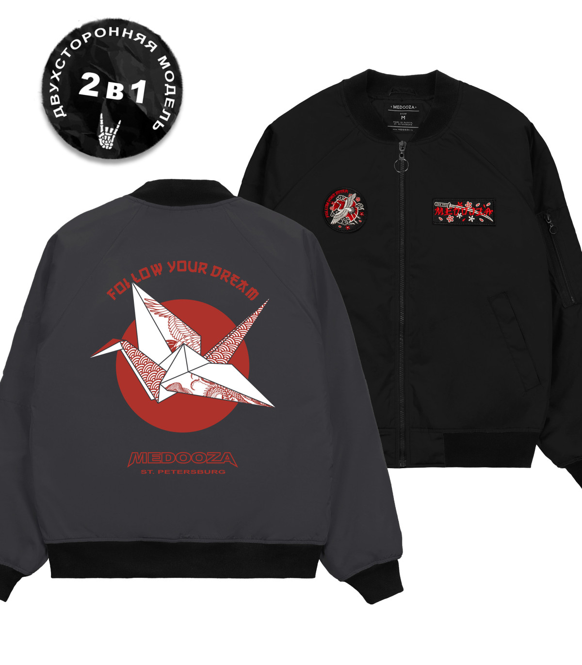 Бомбер MEDOOZA 2-сторон. "Журавль III // Asian Dream"