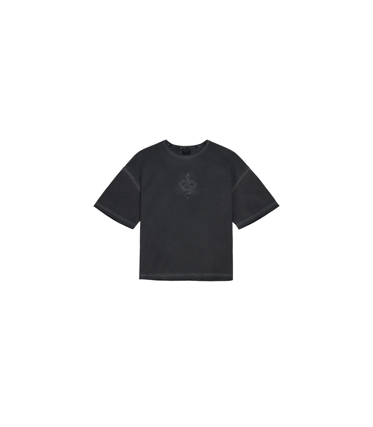 Плотная тяжелая оверсайз футба из хлопкового 2-ниточного футера с необработанными деталями кроя на горловине, рукавах и по низу изделия дополнена минималистичной вышивкой на груди.