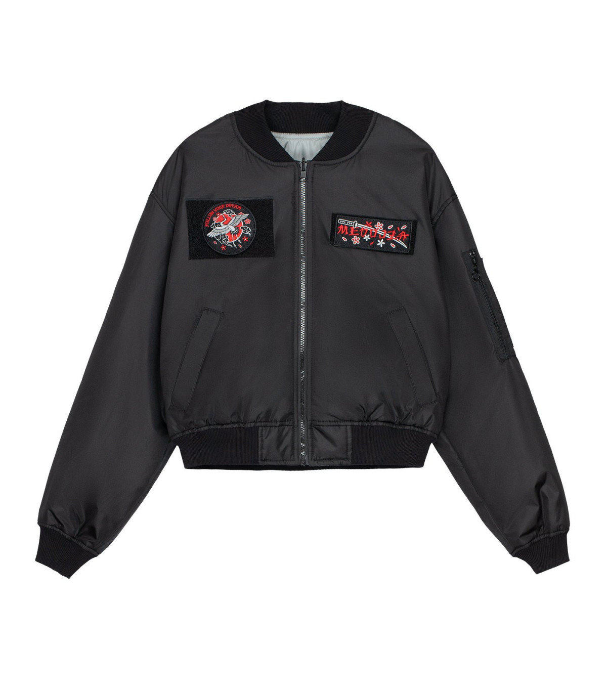 — Бомбер из ветронепроницаемого материала с водоотталкивающей пропиткой.