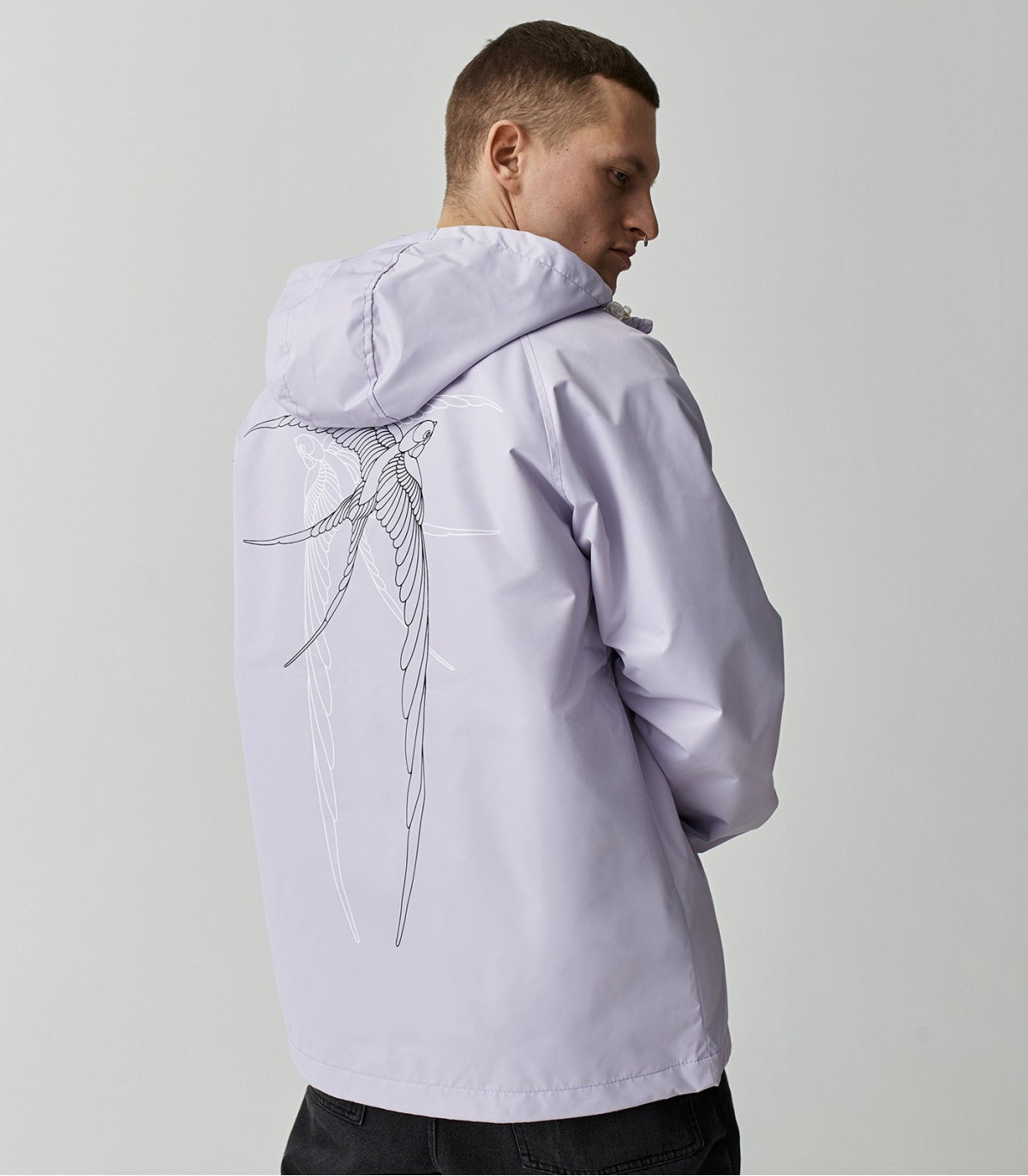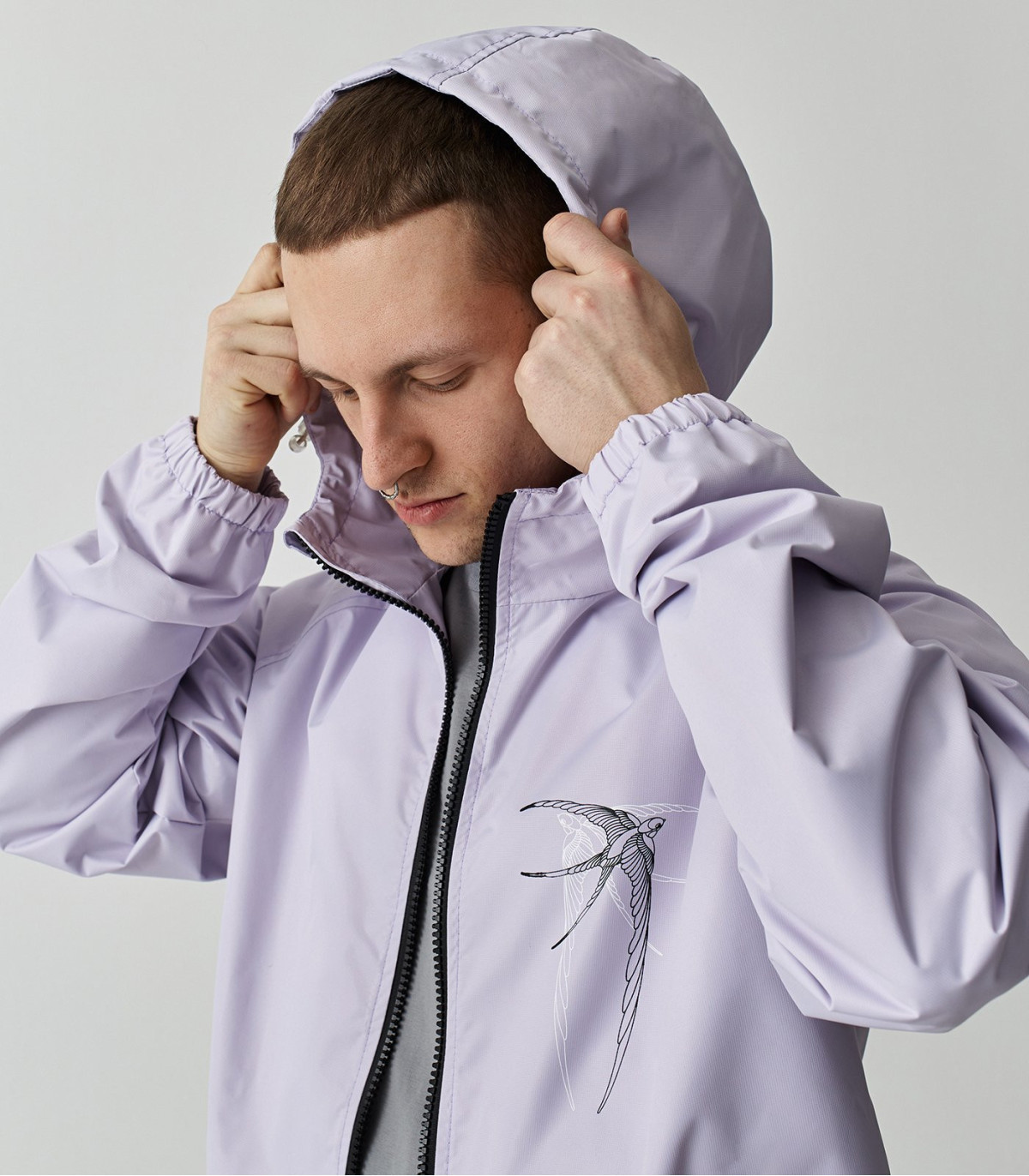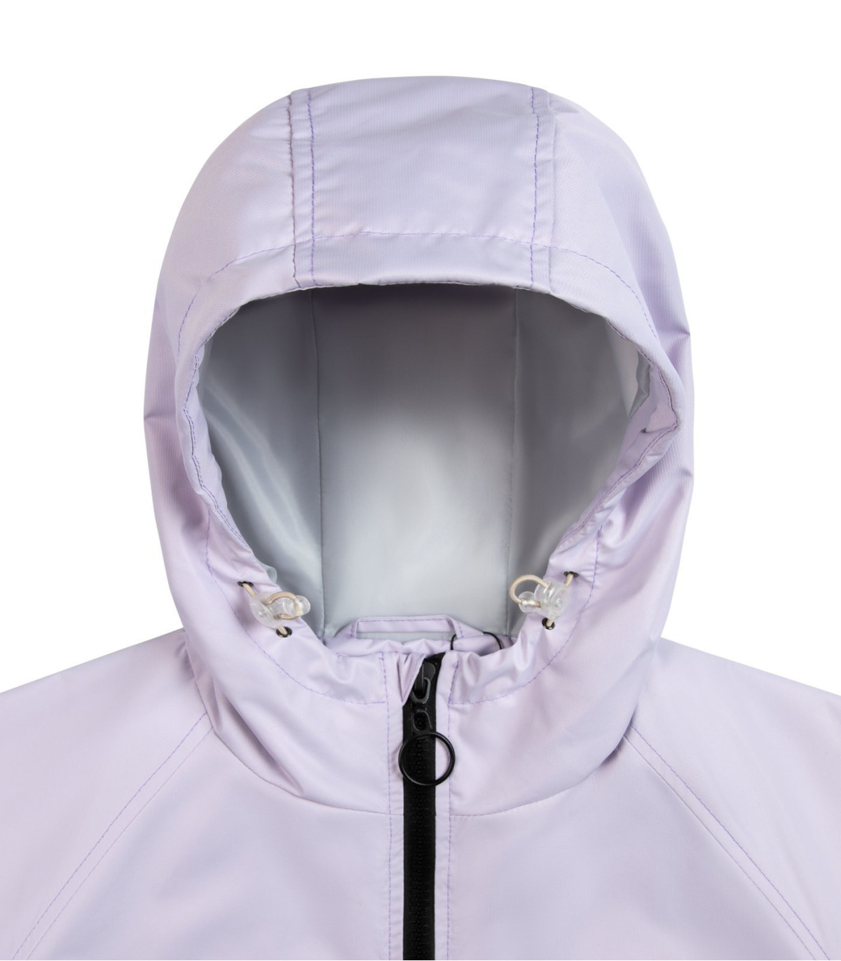 Высокий воротник-стойка, анатомический капюшон с возможностью затянуться по овалу лица, а также кулиски по низу изделия позволяют максимально защититься от непогоды.