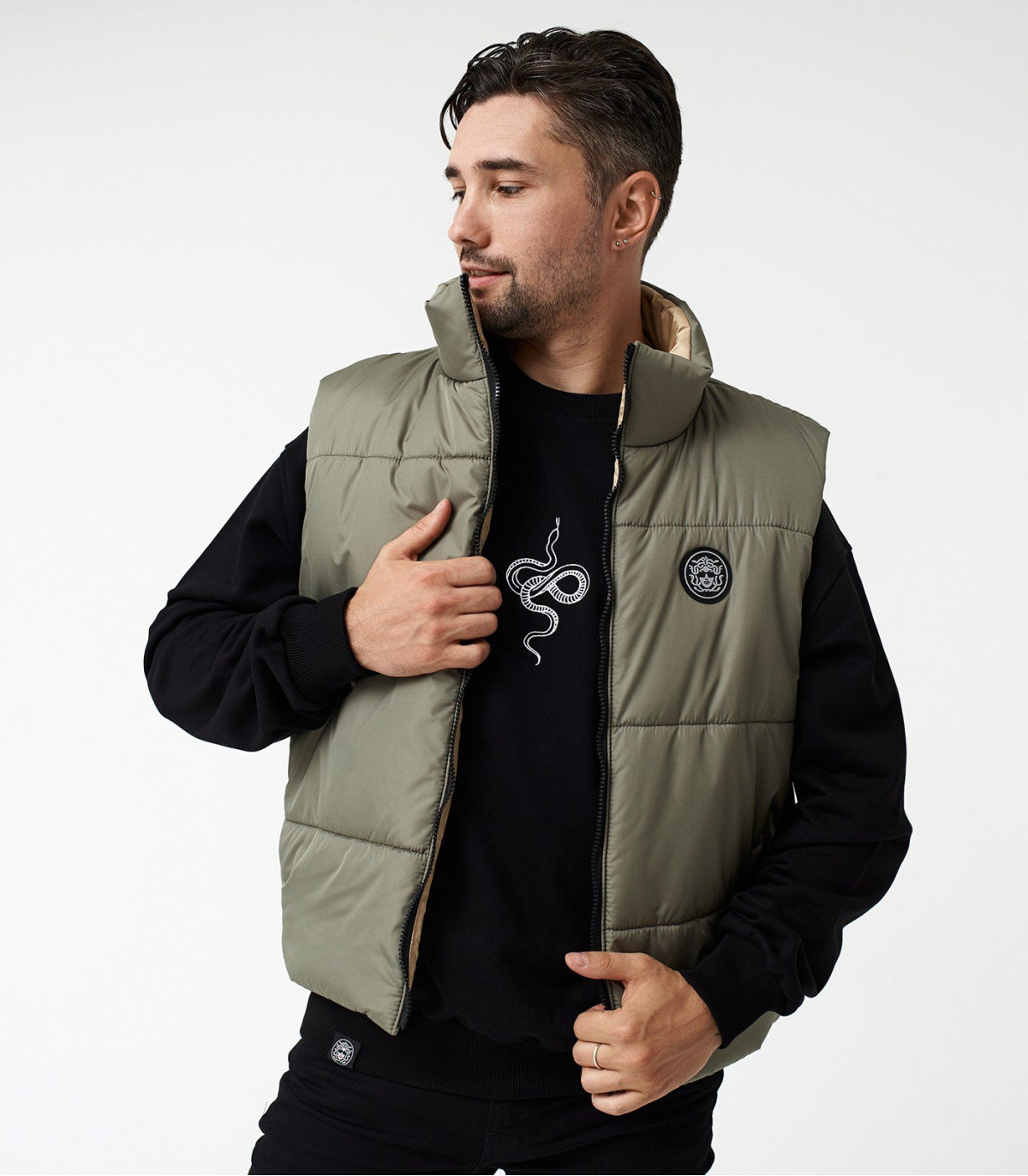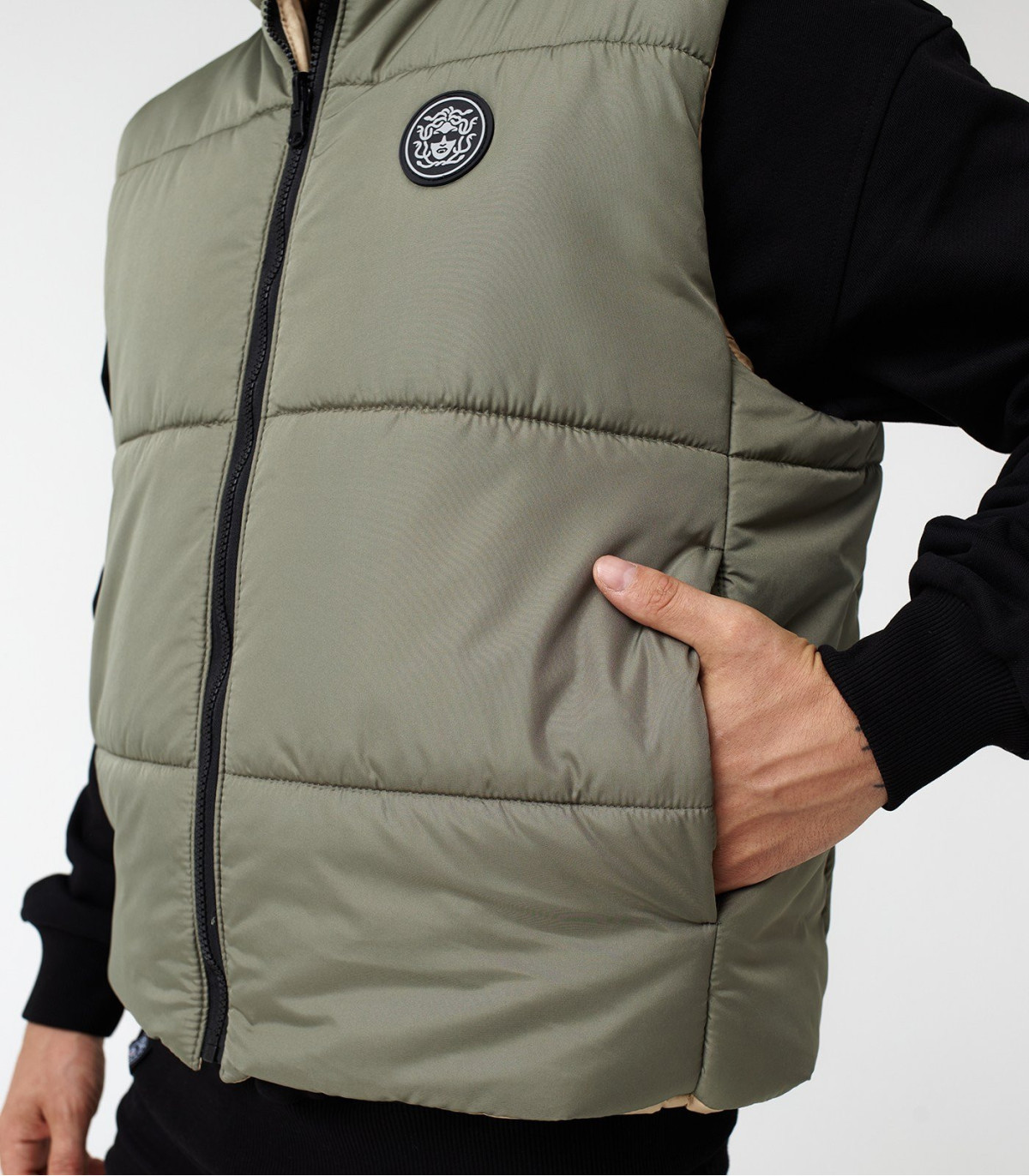 Жилетка MEDOOZA 2-сторон. "Face" (хаки / бежевый)